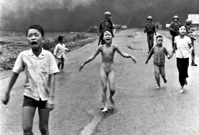 Esta foto nada más verla me impactó mucho, se puede ver a una niña vietnamita corriendo desnuda mientras llora debido a que han bombardeado su pueblo y se ha quemado la ropa.